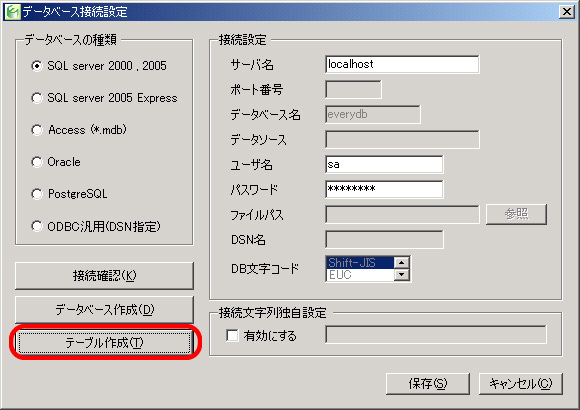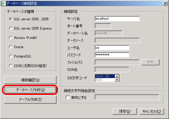 ※EveryDBと同じパソコンにSQLserverがインストールされている場合は、「localhost」と入力して下さい。